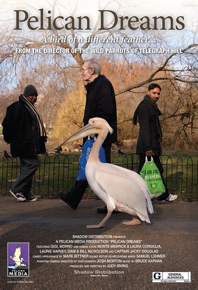 Judy Irving (“The Wild Parrots of Telegraph Hill”) follows a wayward California pelican from her “arrest” on the Golden Gate Bridge into care at a rehab facility and explores nesting grounds, Pacific coast migration and survival challenges.